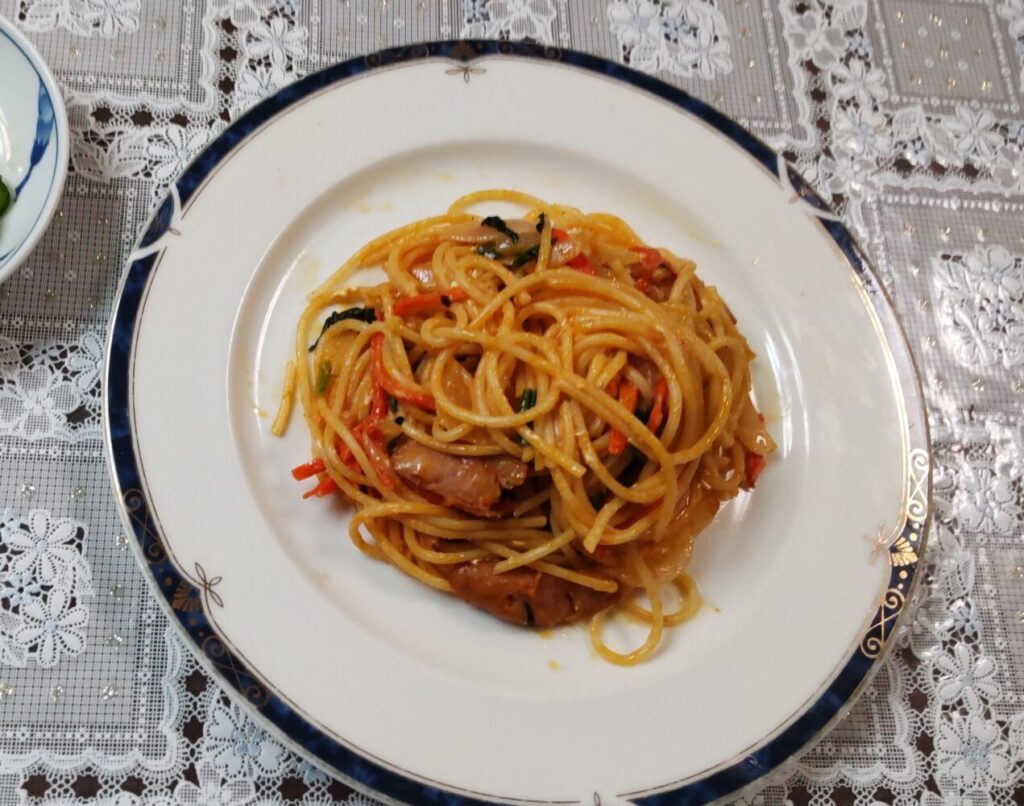 このスパゲティが、具なしのケチャップスパゲッティ。けれど、ほんとうにおいしそうだった。