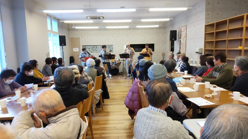 12月7日、ショッピングタウウわかばの旧「春」で、懐かしのロックを聴いて青春にカムバック!百軒だな、ウクレレおじさんズがご出演