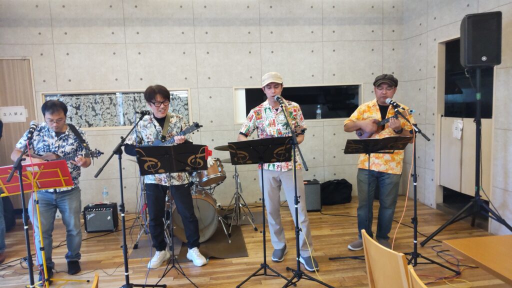百軒だなと、ウクレレおじさんズのふたつのバンドが、楽しく懐かしいナンバーを披露し会場が盛り上がりました。