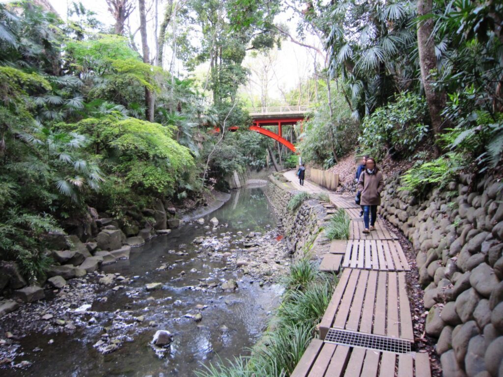 等々力渓谷は全長約1㌔。谷沢川沿いに等々力不動尊を目指して歩くのが定番のコースです。谷には樹木がしげり、いたる所から湧き水が流れ、セキショウなどの湿生植物が多く見られます。