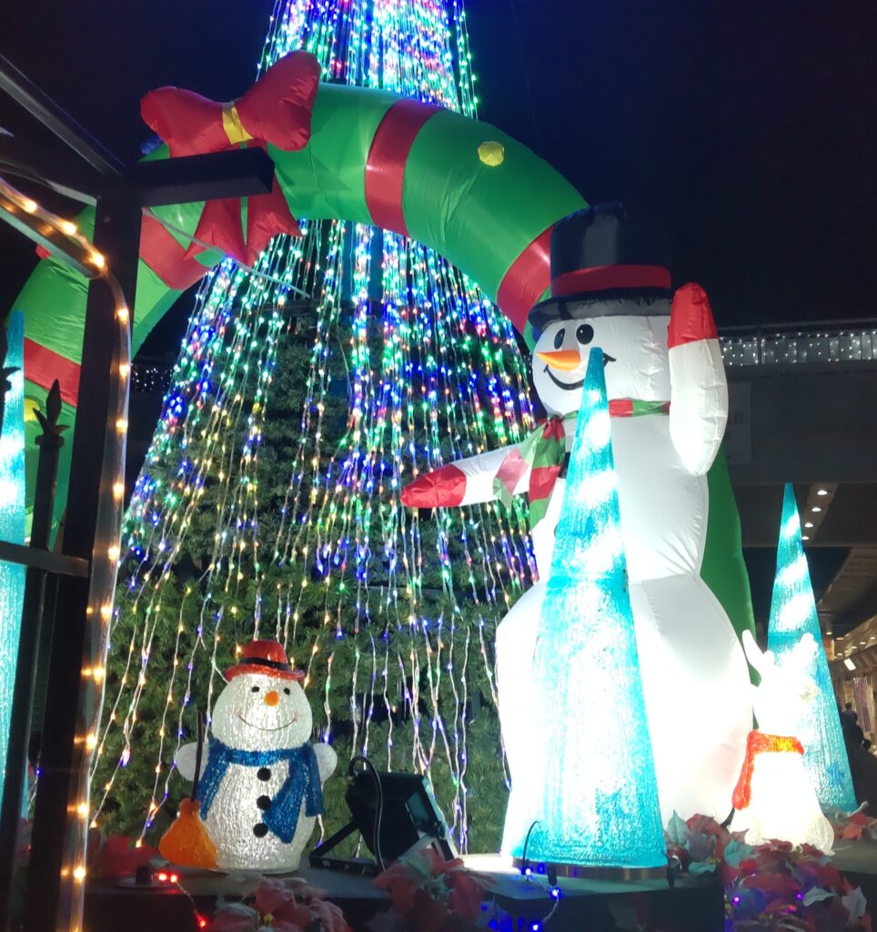 その後若葉台へ。若葉台のツリーは地元のためか温かくてフレンドリーな感じがする。今年はツリー前面に大きな雪だるまがいて、子どもたちが結構喜んでいる。