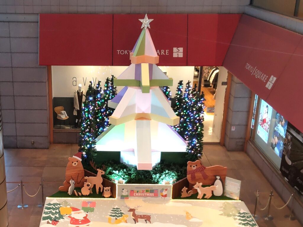 青葉台駅から東急に渡る二階の通路は乾いた木でできていて、歩くとやたらとカランコロンと靴音がして楽しい。東急入り口前にツリー。今年はいつもと少し雰囲気がちがう子どもたちが喜びそう。二階から下に向かって写真を撮る。