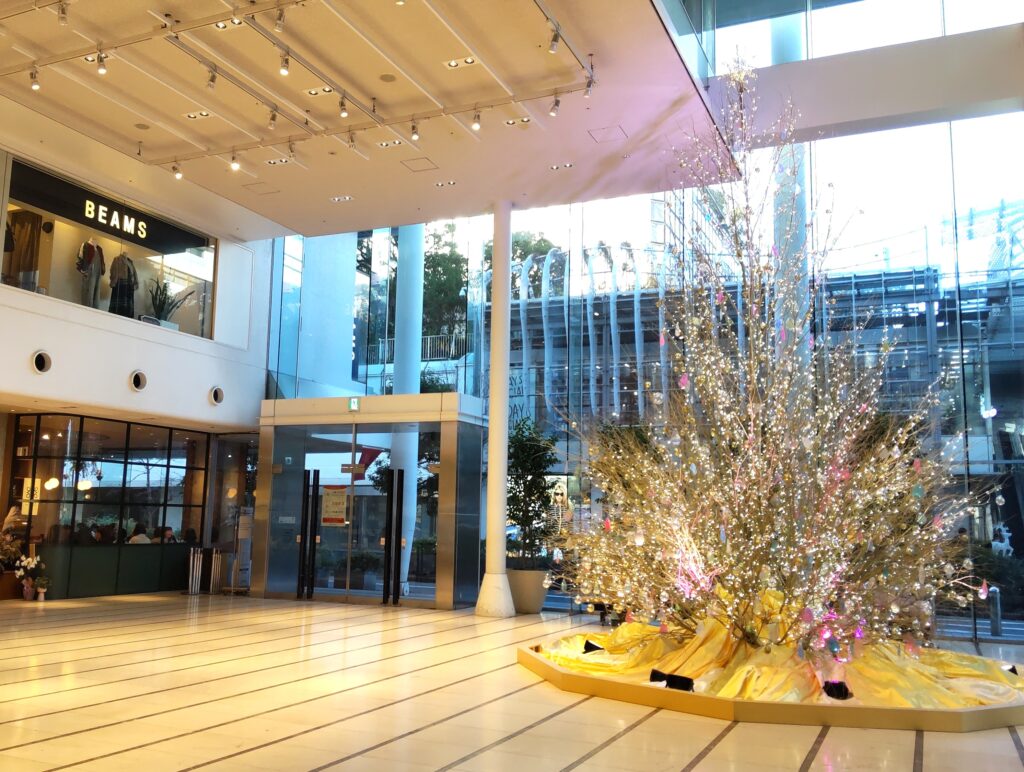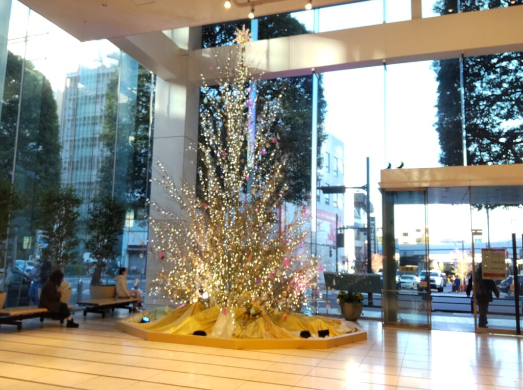 このツリーは玉川高島屋南館一階に飾ってあるツリー。駅前の通りが硝子越しに見えて、スクッと高い木もあって本当にきれい。