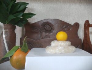 実は、でこぼこ鏡餅にもそれなり愛着がわいてきて、さて、どうしようかと・・・。神様はどちらを喜んで下さるでしょうか。