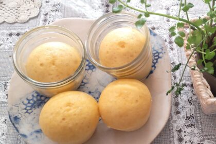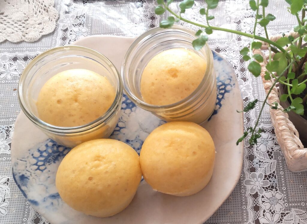 ちょっと栄養が足らないかと思い、卵と牛乳入りの蒸しパンを作りました。