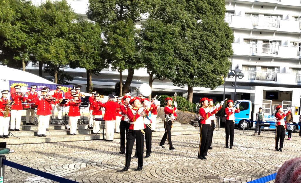 若葉台文化祭期間中の11月23日にはわかばの広場を会場に、横浜市消防音楽隊の演奏とポートエンジェルス119の演技が披露されました。