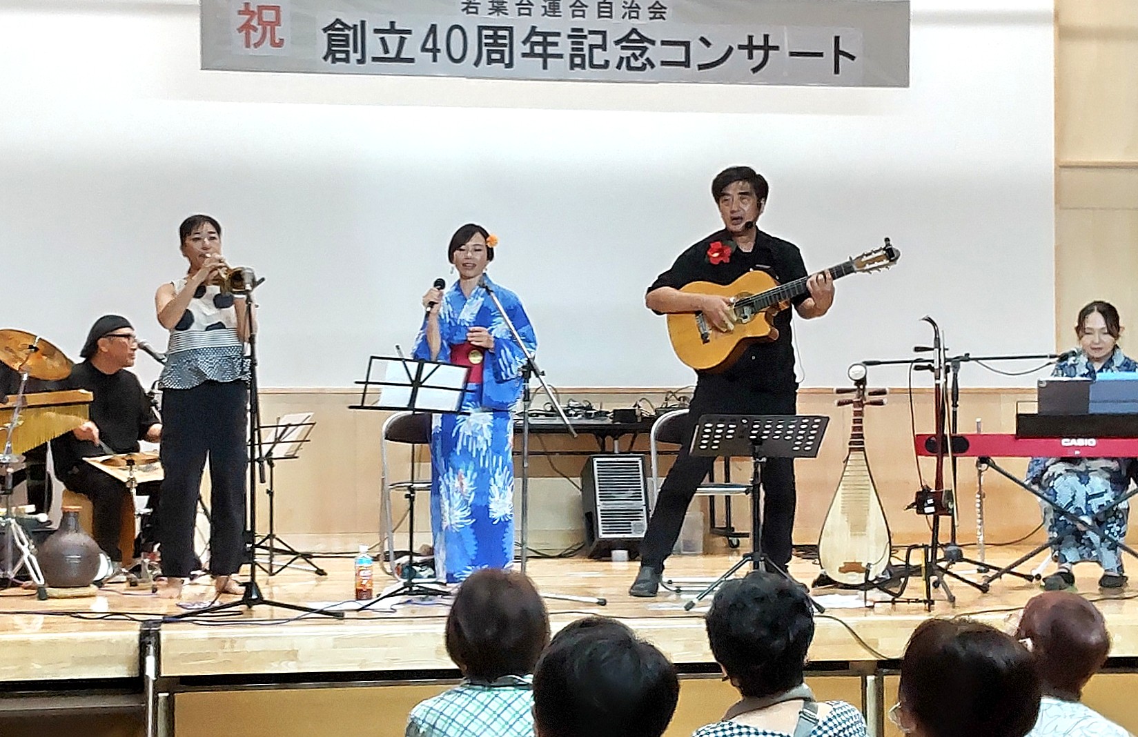 ❇それに先立つ8月24日には、40周年記念コンサート第二弾が若葉台小学校体育館で開催。「芳晴&じゃがたら楽団」の皆さんが、二胡などを駆使し多彩な演奏と歌を披露しました。