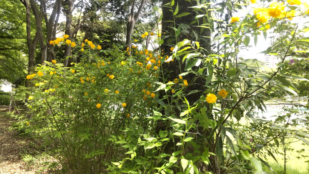 小川に沿って生えているので、かがんで夢中で積んでいたら知り合いの人がきて、「こんにちは」